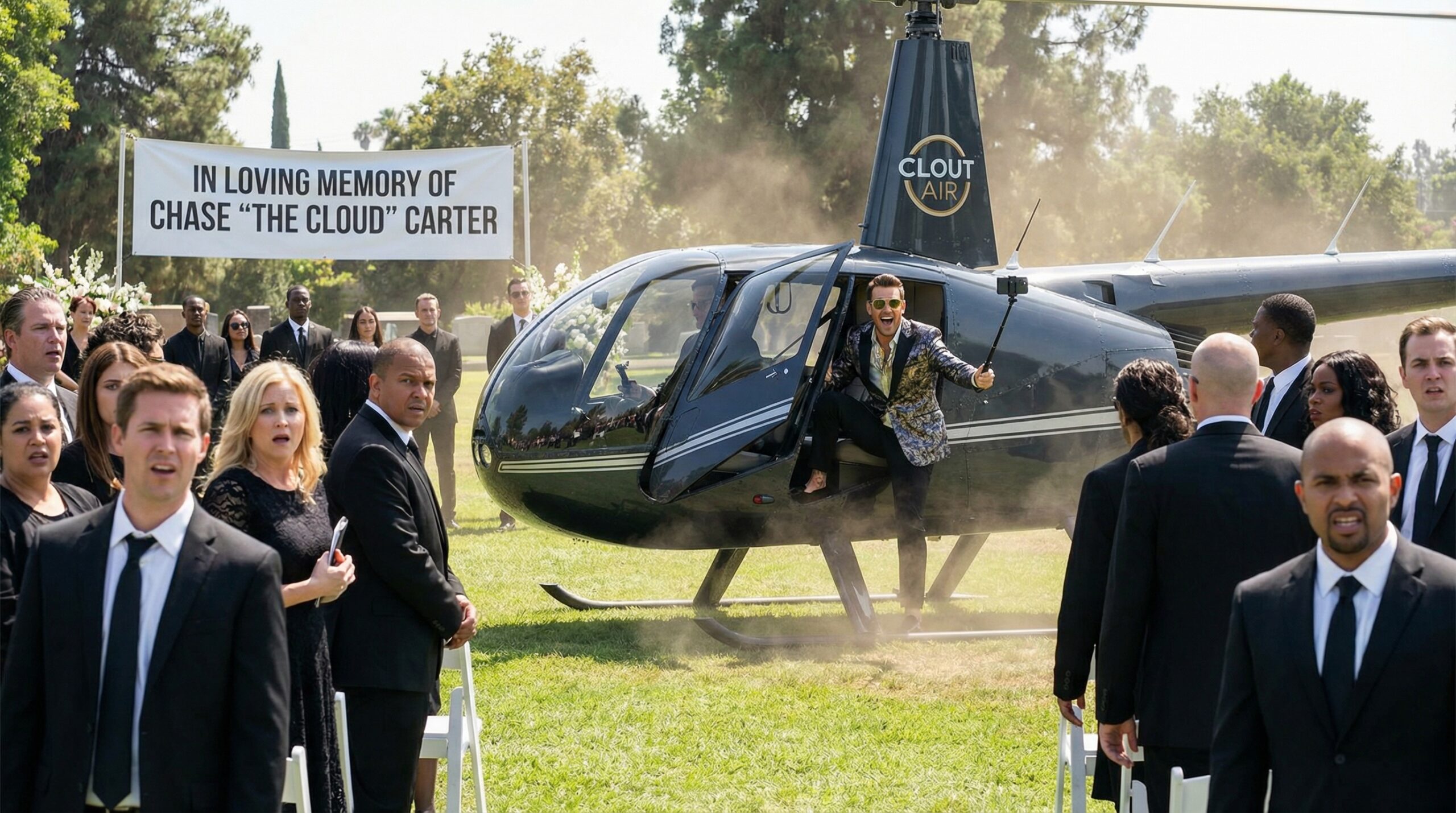 Enquanto amigos e familiares choravam a sua perda no local da cerimónia, o som de hélices interrompeu o luto. Acompanhado por uma equipa de vídeo, Baerten desembarcou da aeronave perante os olhares atónitos dos presentes. “Saúde a todos, bem-vindos ao meu funeral”, terá dito o influenciador ao emergir, provocando uma mistura de alívio, choque e confusão entre os convidados.